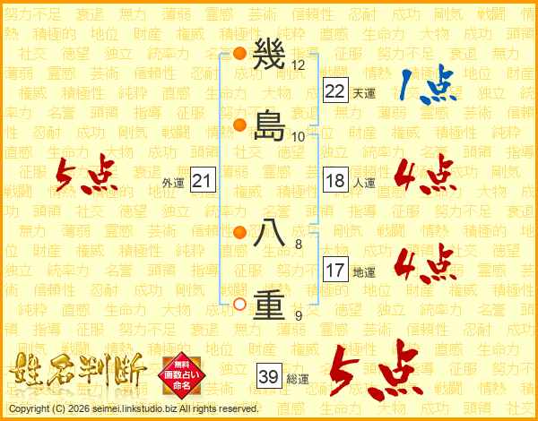 幾島八重さんの総運は39画の5点!