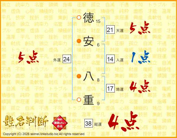 徳安八重さんの総運は38画の4点!