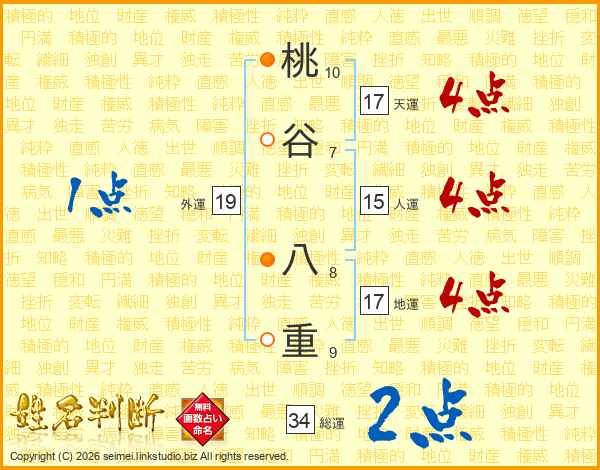 桃谷八重さんの総運は34画の2点!