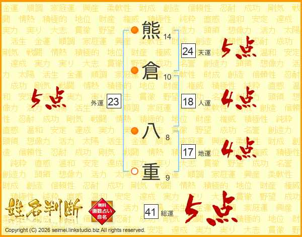 熊倉八重さんの天運は24画の5点!