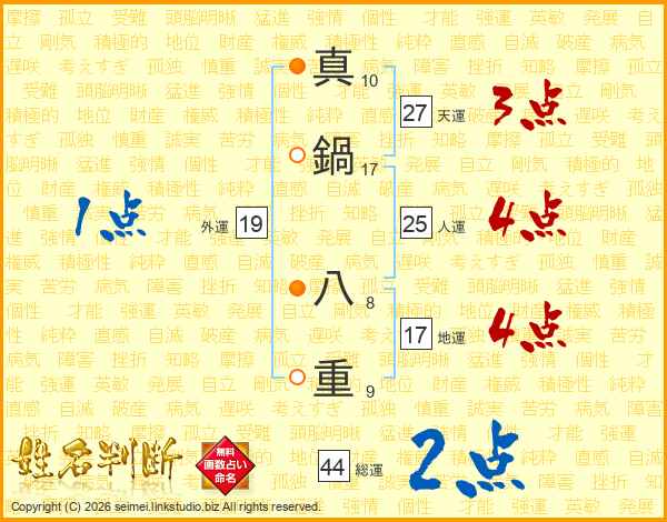 真鍋八重さんの総運は44画の2点!
