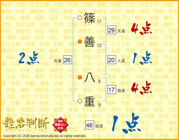篠善八重さんの天運は29画の4点!