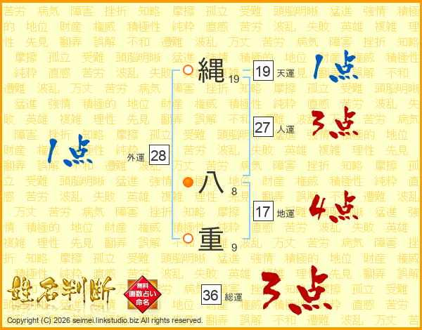 縄八重さんの総運は36画の3点!