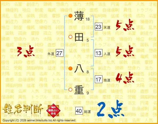 薄田八重さんの天運は23画の5点!