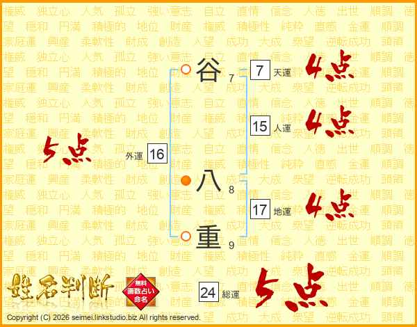 谷八重さんの総運は24画の5点!