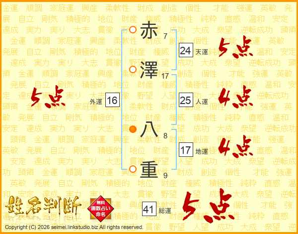 赤澤八重さんの総運は41画の5点!