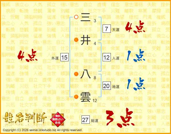 三井八雲さんの総運は27画の3点!