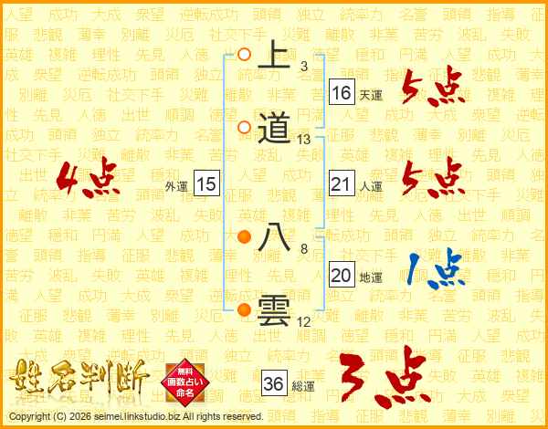 上道八雲さんの総運は36画の3点!