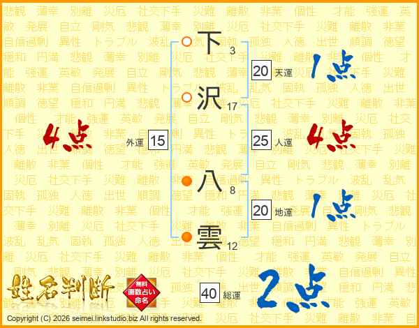 下沢八雲さんの人運は25画の4点!