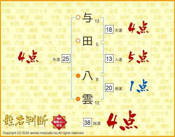 与田八雲さんの総運は38画の4点!