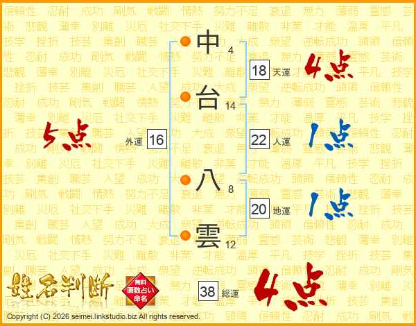 中台八雲さんの総運は38画の4点!
