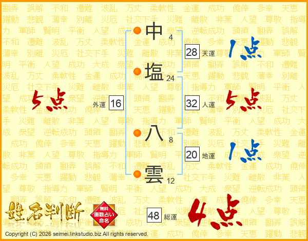 中塩八雲さんの総運は48画の4点!