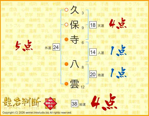 久(3画)保(9画)寺(6画) 八(8画)雲(12画)