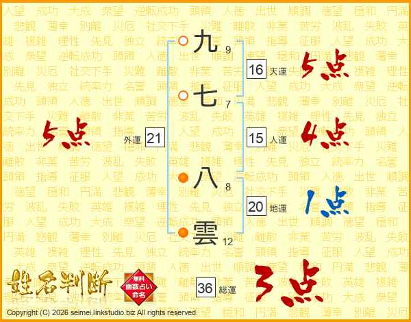 九七八雲さんの総運は36画の3点!
