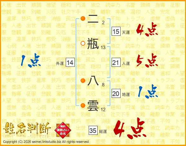 二瓶八雲さんの総運は35画の4点!
