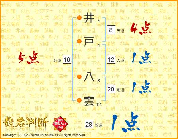 井戸八雲さんの外運は16画の5点!