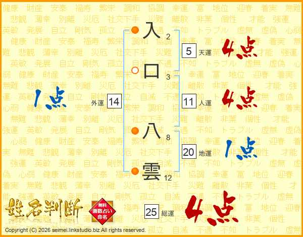 入口八雲さんの人運は11画の4点!