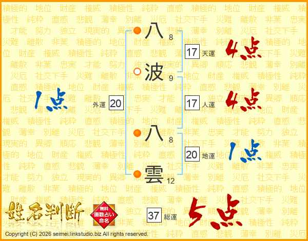 八波八雲さんの総運は37画の5点!