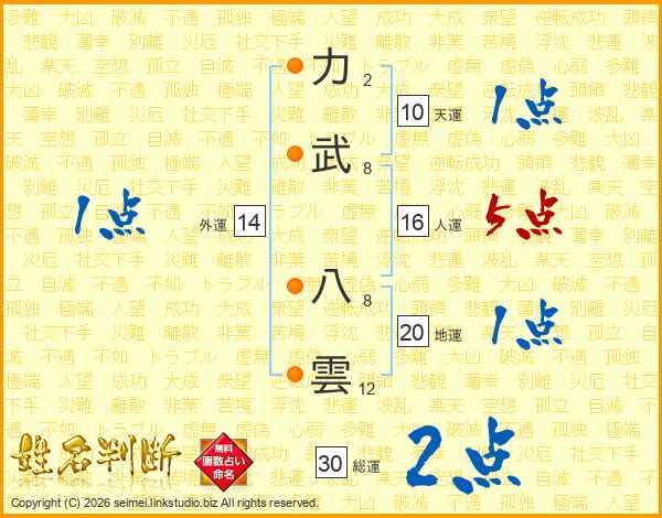 力武八雲さんの総運は30画の2点!