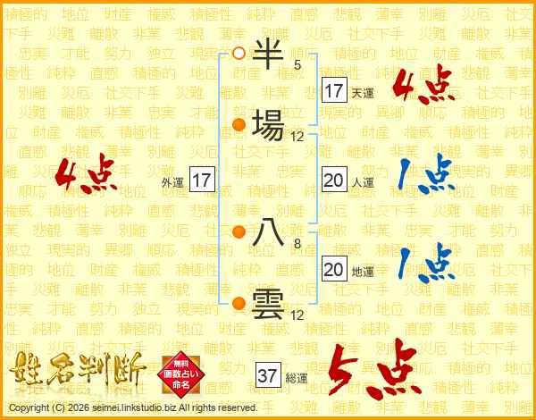 半場八雲さんの総運は37画の5点!