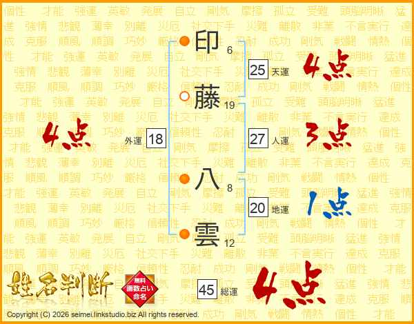 印藤八雲さんの外運は18画の4点!