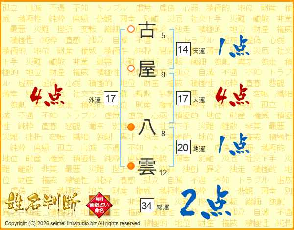 古屋八雲さんの総運は34画の2点!