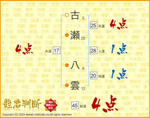 古瀬八雲さんの総運は45画の4点!