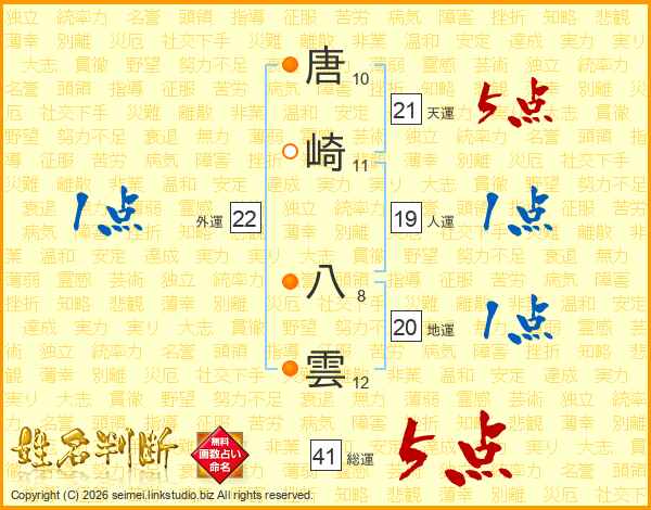 唐(10画)崎(11画) 八(8画)雲(12画)