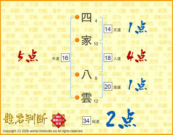 四家八雲さんの総運は34画の2点!