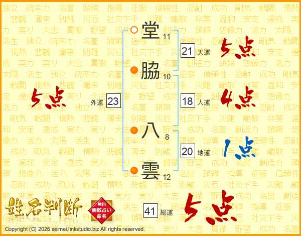 堂脇八雲さんの総運は41画の5点!