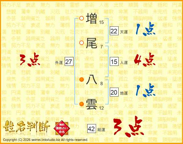 増尾八雲さんの人運は15画の4点!