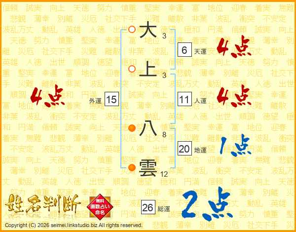 大上八雲さんの総運は26画の2点!