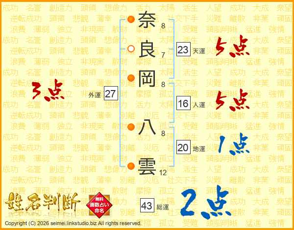 奈良岡八雲さんの総運は43画の2点!