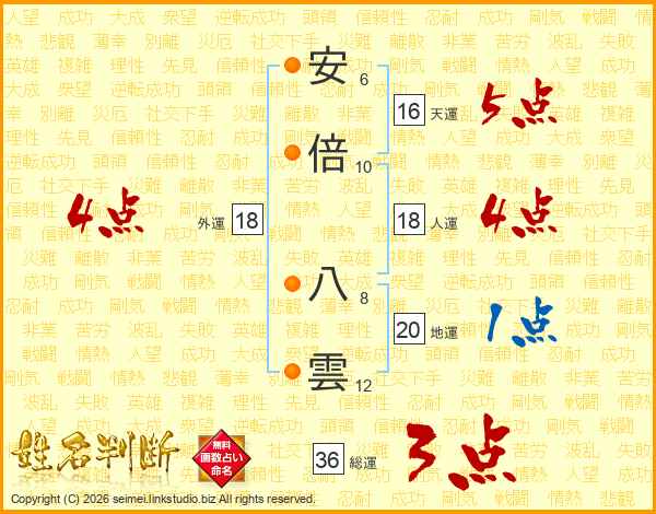 安倍八雲さんの人運は18画の4点!