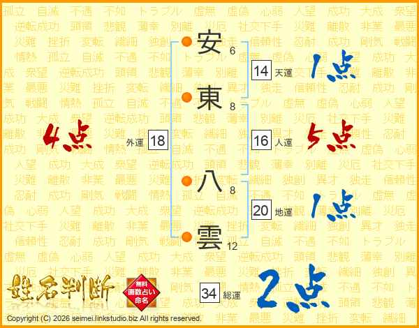 安東八雲さんの天運は14画の1点!