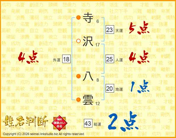 寺沢八雲さんの総運は43画の2点!