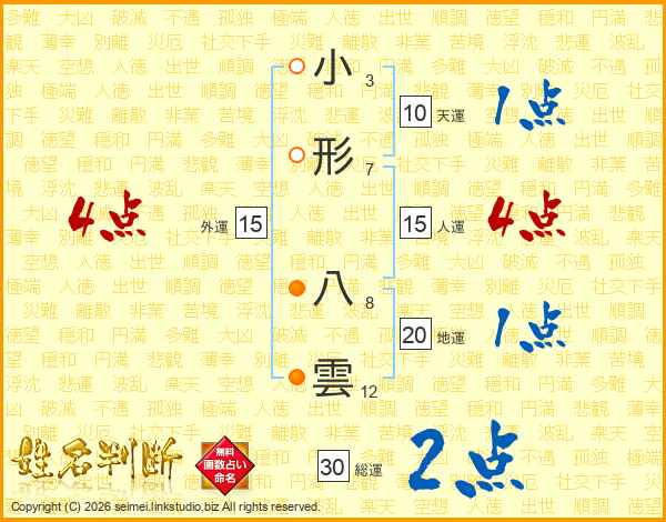 小形八雲さんの総運は30画の2点!