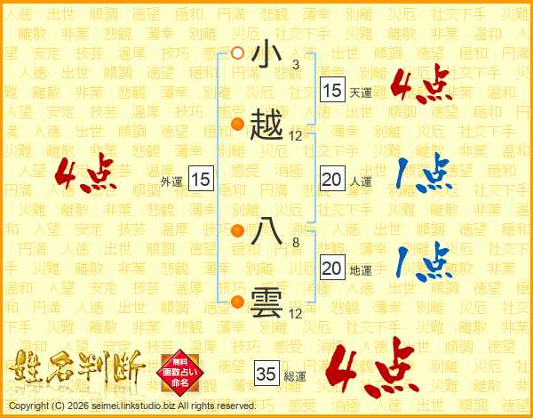 小越八雲さんの総運は35画の4点!