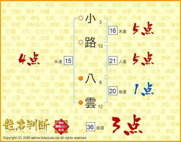 小路八雲さんの外運は15画の4点!