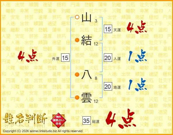 山結八雲さんの総運は35画の4点!