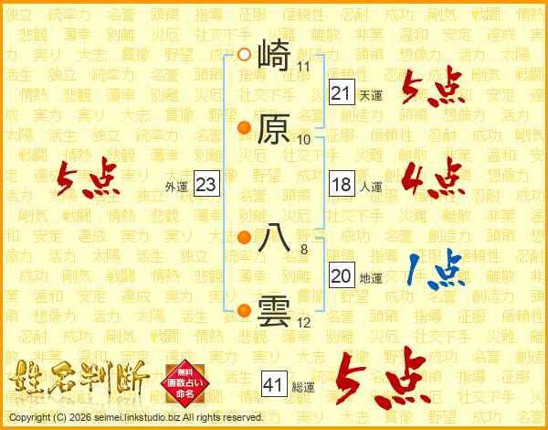 崎原八雲さんの総運は41画の5点!