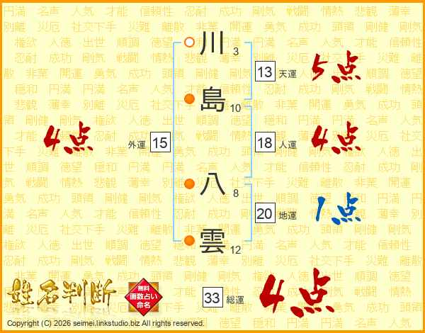 川島八雲さんの総運は33画の4点!