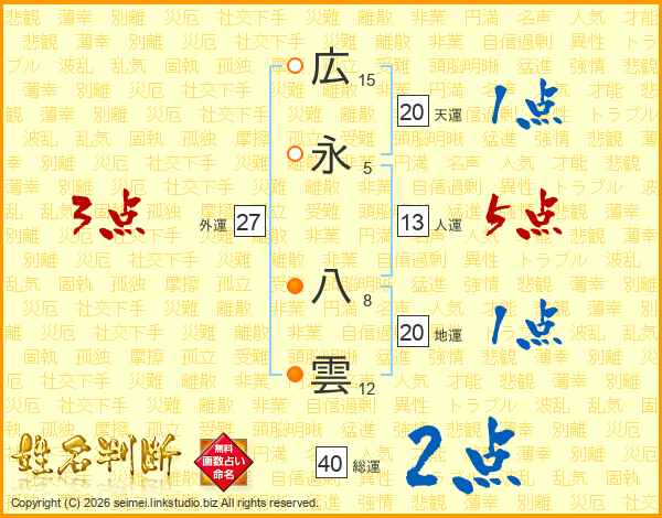 広永八雲さんの人運は13画の5点!
