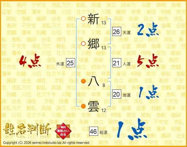 新郷八雲さんの天運は26画の2点!