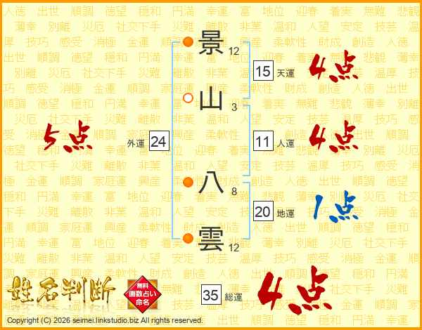 景山八雲さんの総運は35画の4点!