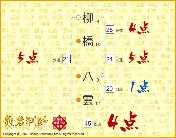 柳橋八雲さんの総運は45画の4点!