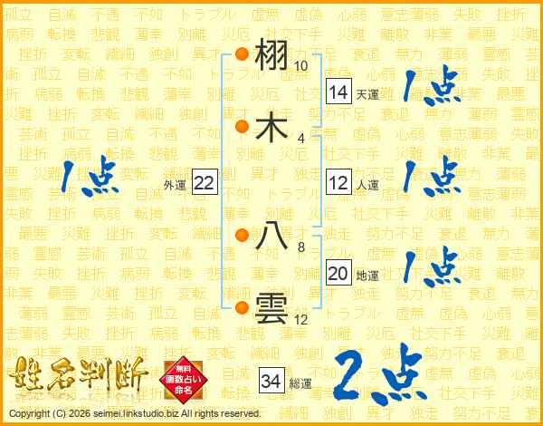 栩木八雲さんの総運は34画の2点!