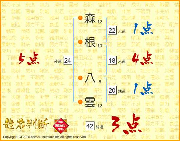 森根八雲さんの総運は42画の3点!