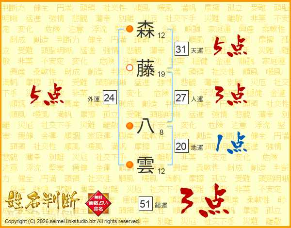 森藤八雲さんの総運は51画の3点!