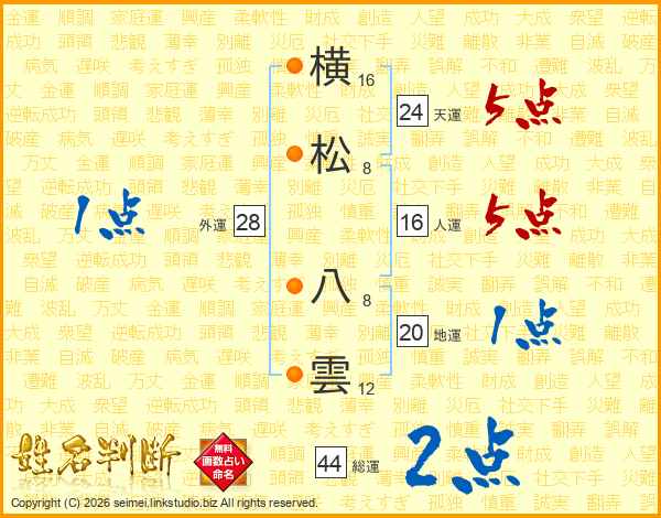 横松八雲さんの総運は44画の2点!
